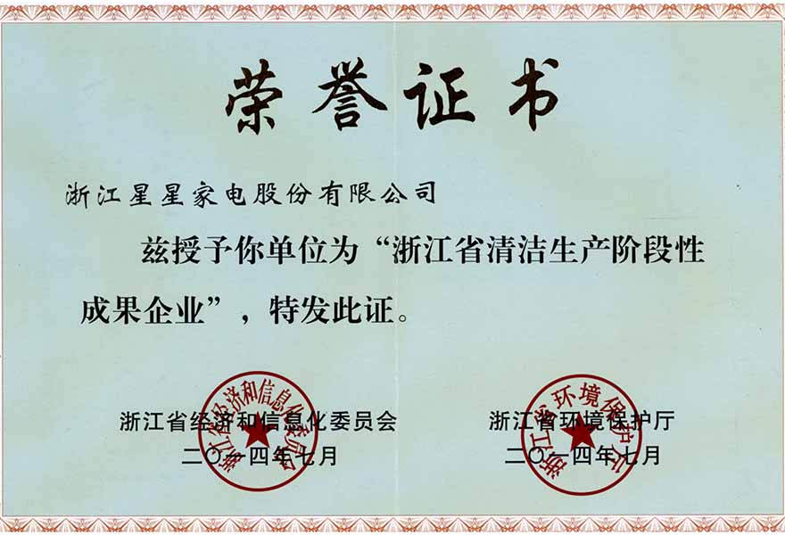 浙江省清潔生產(chǎn)階段性成果企業(yè)